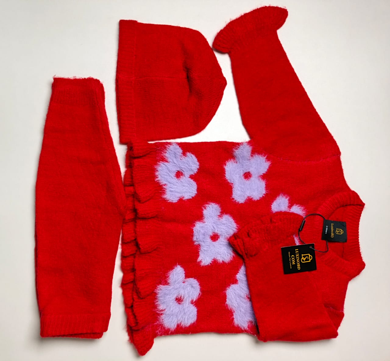 Baby Winter Sweater Set – Soft Knit, 4 Colors | 1–4 Years (3 Pcs Set)