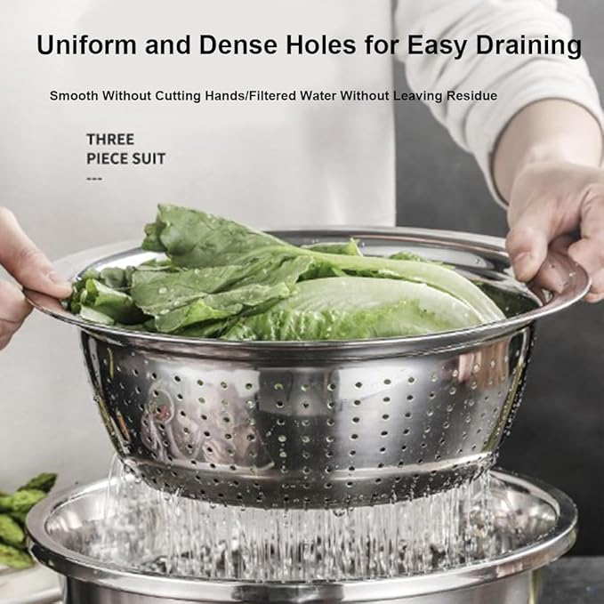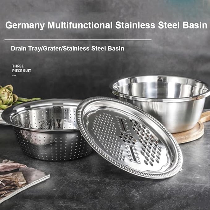 Multifunctional Stainless Steel Basin Set – 3-in-1 Food Prep Master (26CM)